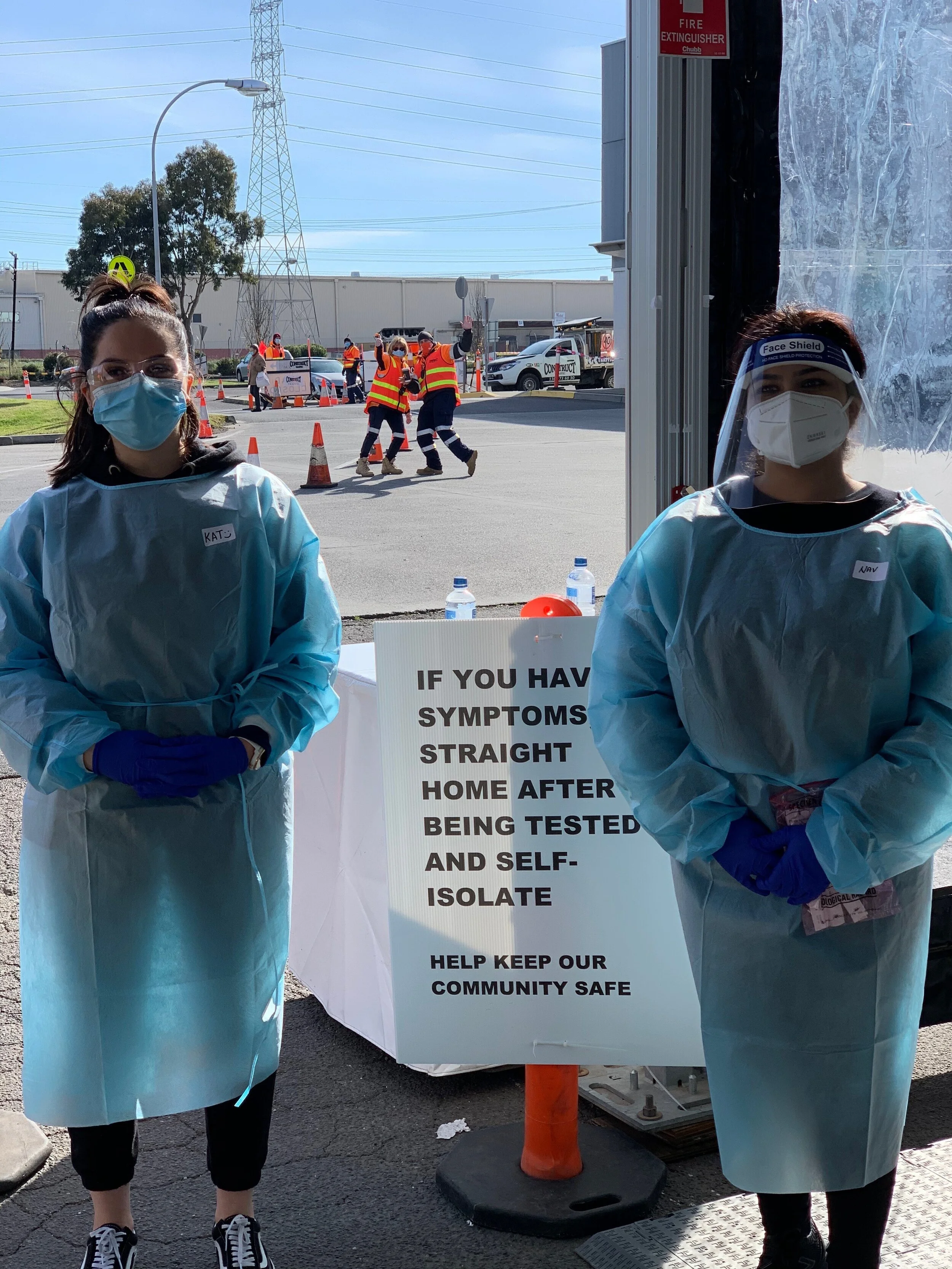 Kat & Nav Preet at a COVID-19 collection centre. Click here to read Nav Preet’s experience.